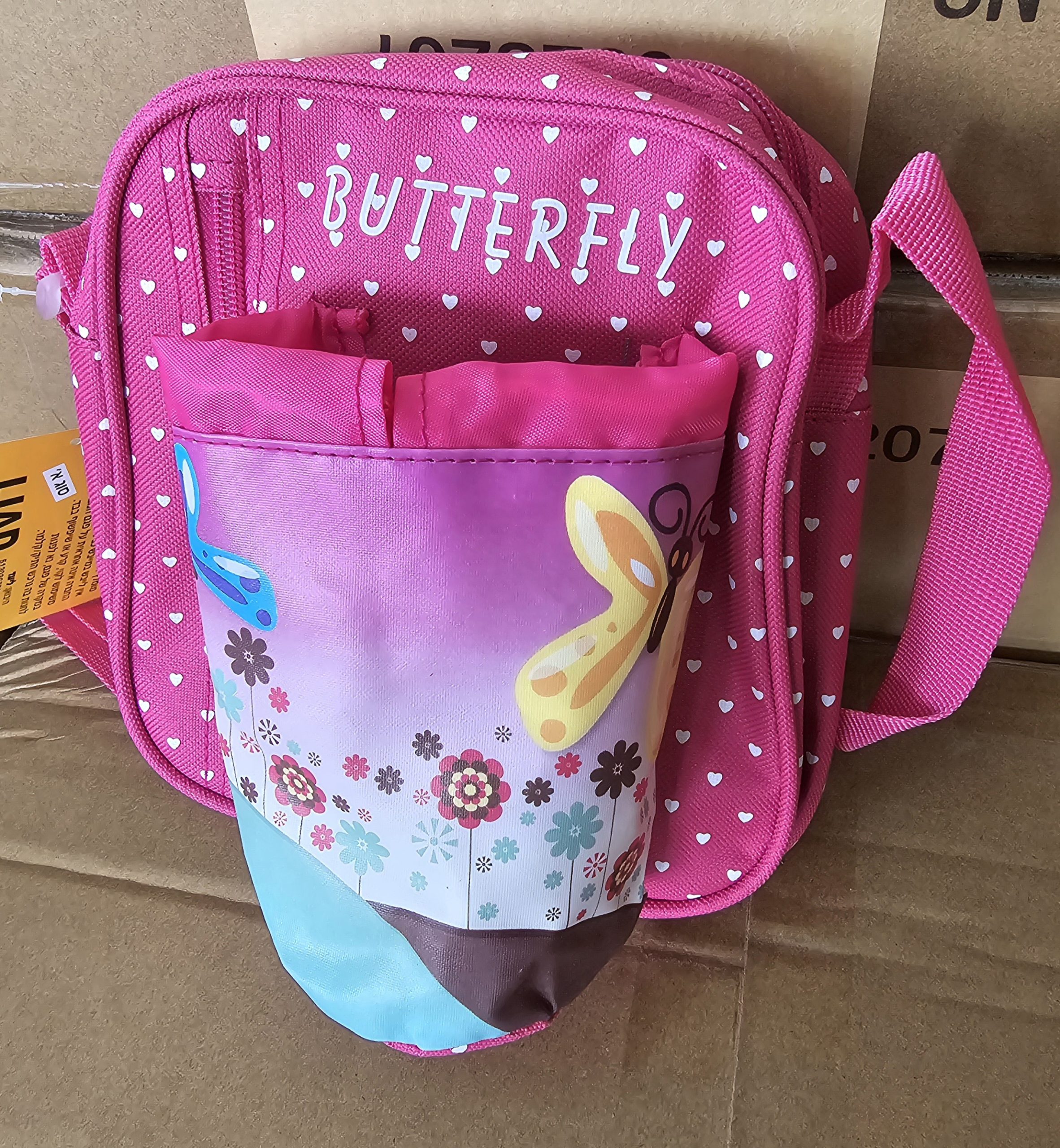 תיק תליה צוואר פרפרים + בקבוק